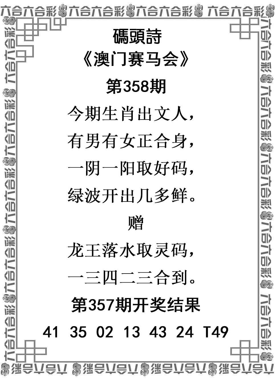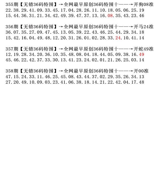| 356期 | 牛 | 4头 | 9尾 | 马24 |