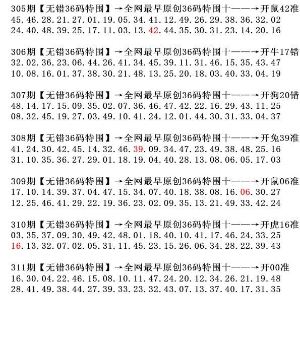 | 305期 | 鼠 | 2头 | 2尾 | 鼠42 |
